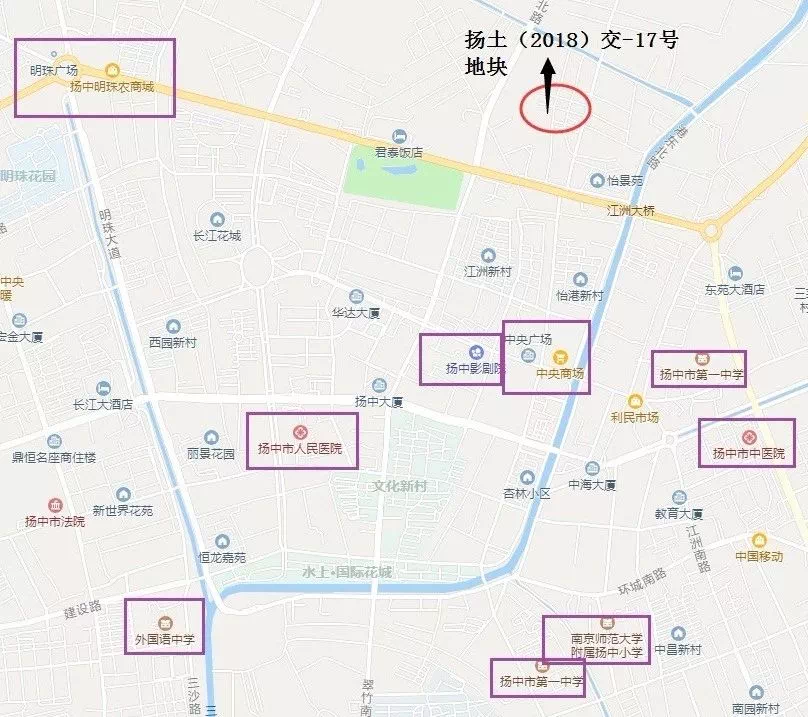 地块周边有扬中市排名前列中学、扬中市实验小学、扬中体育活动中心、雨润中央商场、江洲广场,紧邻城北公园等配套,在扬中市区算是优质!